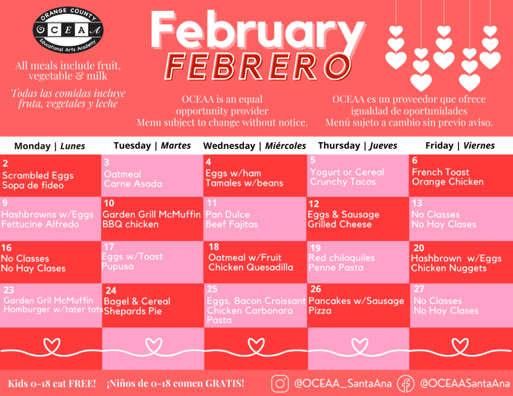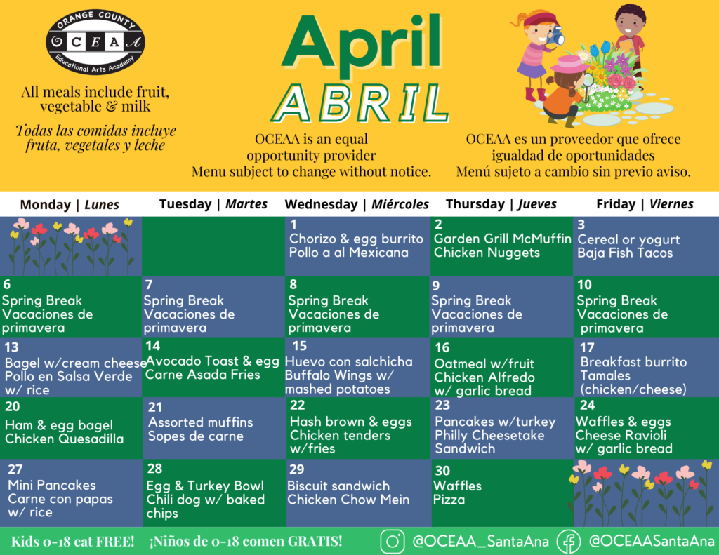 ¡OCEAA se compromete a proporcionar a cada estudiante las herramientas que necesitan para tener éxito, incluyendo las comidas nutritivas que disfrutan! Universal Meals garantiza que todos los estudiantes tengan acceso a comidas escolares saludables sin costo alguno.